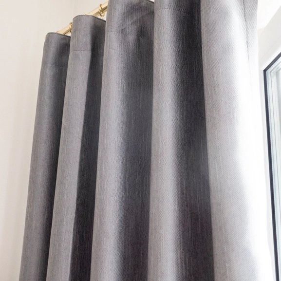 Curtain in a slightly thicker fabric suitable for use as a blackout curtain since it excludes 80% of light.