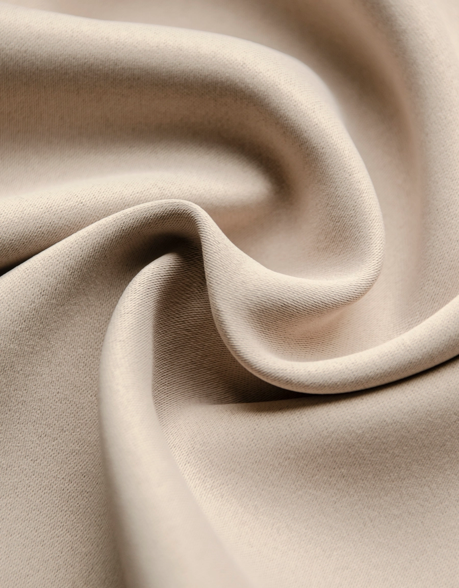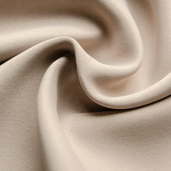 Dokie curtain in a soft, beige, fabric with dim-out effect.