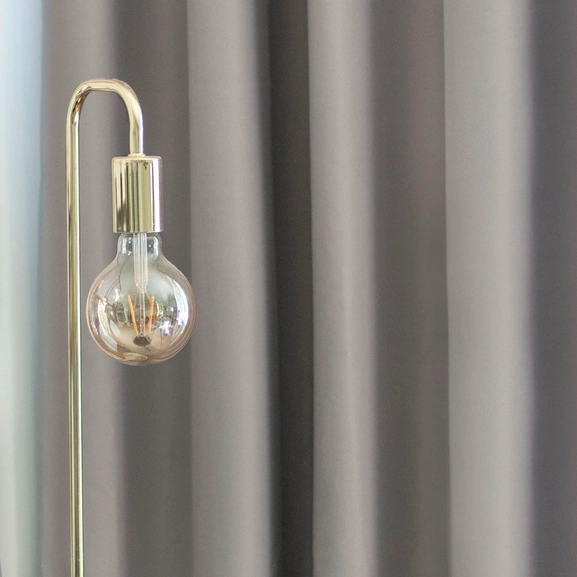Dokie curtain in a soft, light gray fabric with dim-out effect. The curtain has extra length and width – the perfect curtain in a room where you want a hotel feeling!