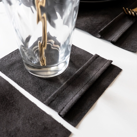 Coaster in lovely imitation suede. The pack contains 6 pcs.
